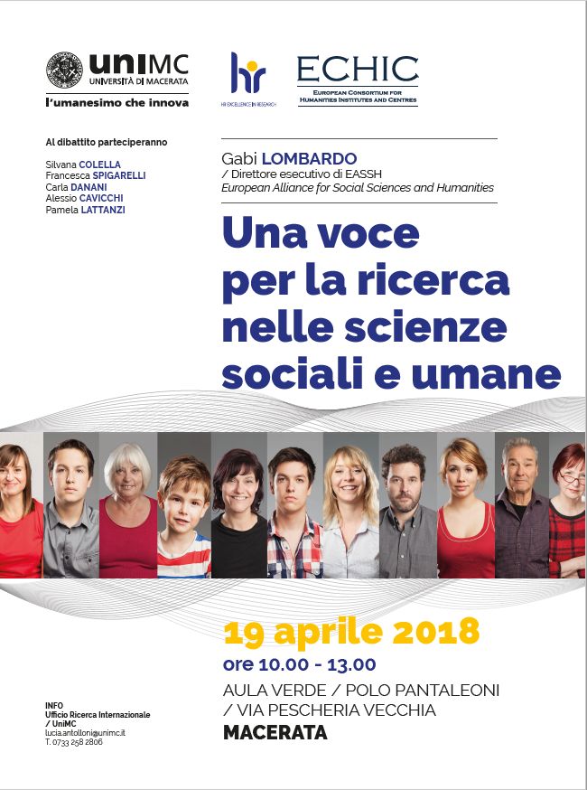 Aperto a tutto l'Ateneo, l'incontro mira a rilanciare la discussione sulle prospettive della ricerca, a livello europeo, nell'ambito delle scienze sociali e scienze umane (SSH). Interverrà Gabi Lombardo, direttore esecutivo della European Alliance for Social Sciences and Humanities (EASSH), un consorzio importante che, negli ultimi due anni, è diventato l'interlocutore privilegiato della Commissione per l'area SSH. Gabi Lombardo illustrerà non solo l'ottimo lavoro di 'lobbying' che EASSH sta facendo, e le varie attività che ha in campo, ma anche le nuove prospettive del prossimo programma quadro della ricerca europea, FP9, che al momento sono oggetto di febbrili discussioni. Dopo l'intervento di Lombardo, ci sarà spazio per un'ampia discussione e per la presentazione di contributi legati all’esperienza di UniMc.