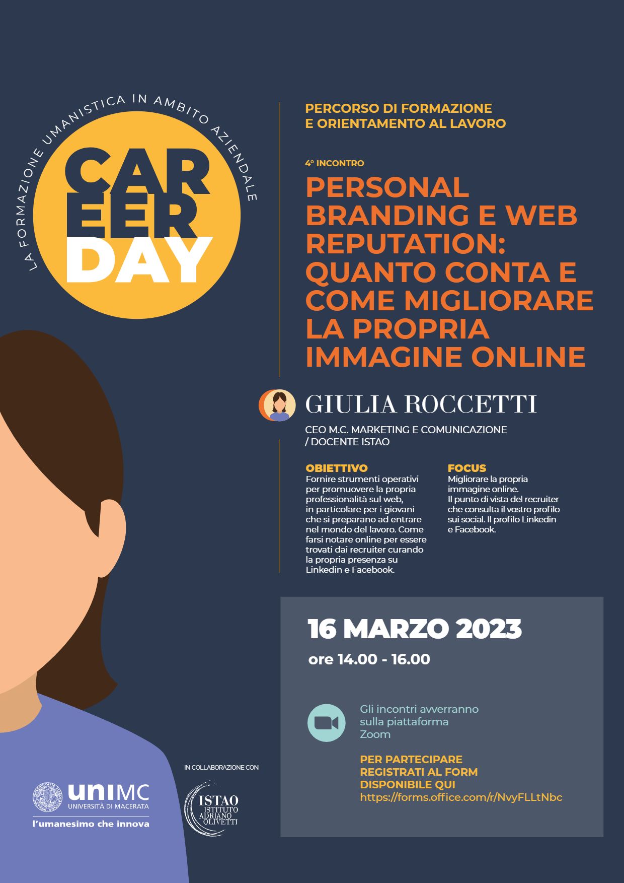 L'incontro ha come obiettivo quello di fornire strumenti operativi per promuovere la propria professionalità sul web, in particolare per i giovani che si preparano ad entrare nel mondo del lavoro: come farsi notare online per essere trovati dai recruiter curando la propria presenza su Linkedin e Facebook.