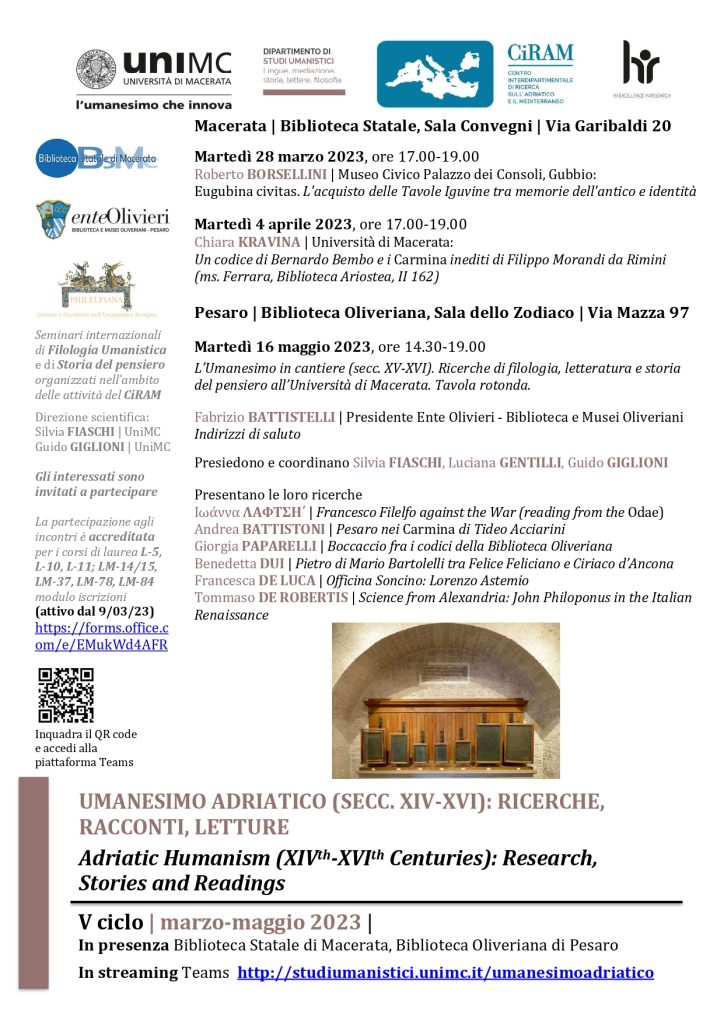 Seminari internazionali di Filologia Umanistica e di Storia del pensiero organizzati nell’ambito delle attività del CiRAM