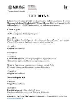 Laboratorio residenziale, gratuito, rivolto a studenti e studentesse del Corso di Laurea Magistrale in Scienze Filosofiche (LM-78) e del III anno del corso di laurea triennale in Filosofia (L-5) - 1,50 CFU agli studenti e alle studentesse partecipanti
